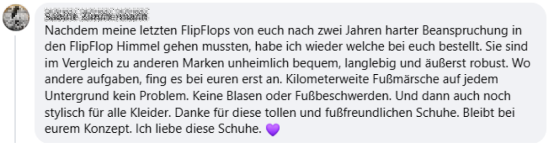 Archies Flip Flops und deine Füße – die perfekte Langzeitbeziehung. Unser Material und Design macht die Flip Flops nämlich sehr langlebig und viele unserer Kunden berichten davon, dass sie sie viele Jahre lang glücklich tragen.